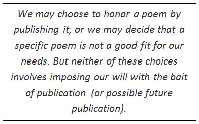 For example, in the 2008 edition, guest editor, Charles Wright tells us, by referencing lines from W. B. Yeats, “The Circus Animals’ Desertion”, that poetry comes from the heart, (the “foul rag-and-bone-shop of the heart,”) and also, that, as Keats asserts, poetry is a matter of ‘soul-making,’ along with a little math.